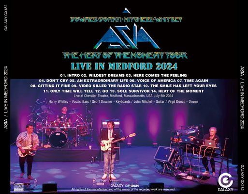 そのエイジアがヘッドライナーを務めフォーカス、ウィッシュボーン・アッシュ、カーブド・エアといった70年代レジェンド・バンドと共に開始された”ザ・ヒート・オブ・ザ・モーメンツ”北米ツアーから、7月6日マサチューセッツ・メドフォード公演から極上クオリティのオーディエンス録音マスターからコンプリート収録した最新ライブ音源です!