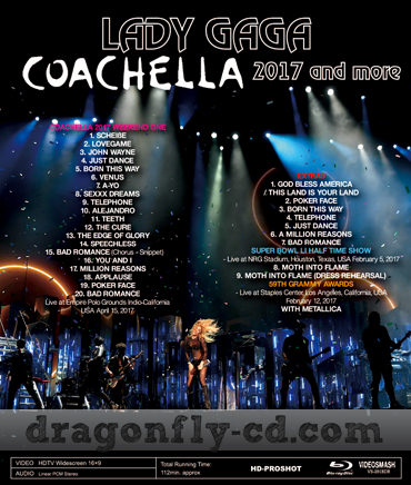 さらにエクストラとして世界中が注目した2017年2月5日のスーパーボウル・ハーフタイム・ショウおよびメタリカとの共演が話題を呼んだ2017年2月12日のグラミー・アワーズでのハーサルおよび本編も収録。